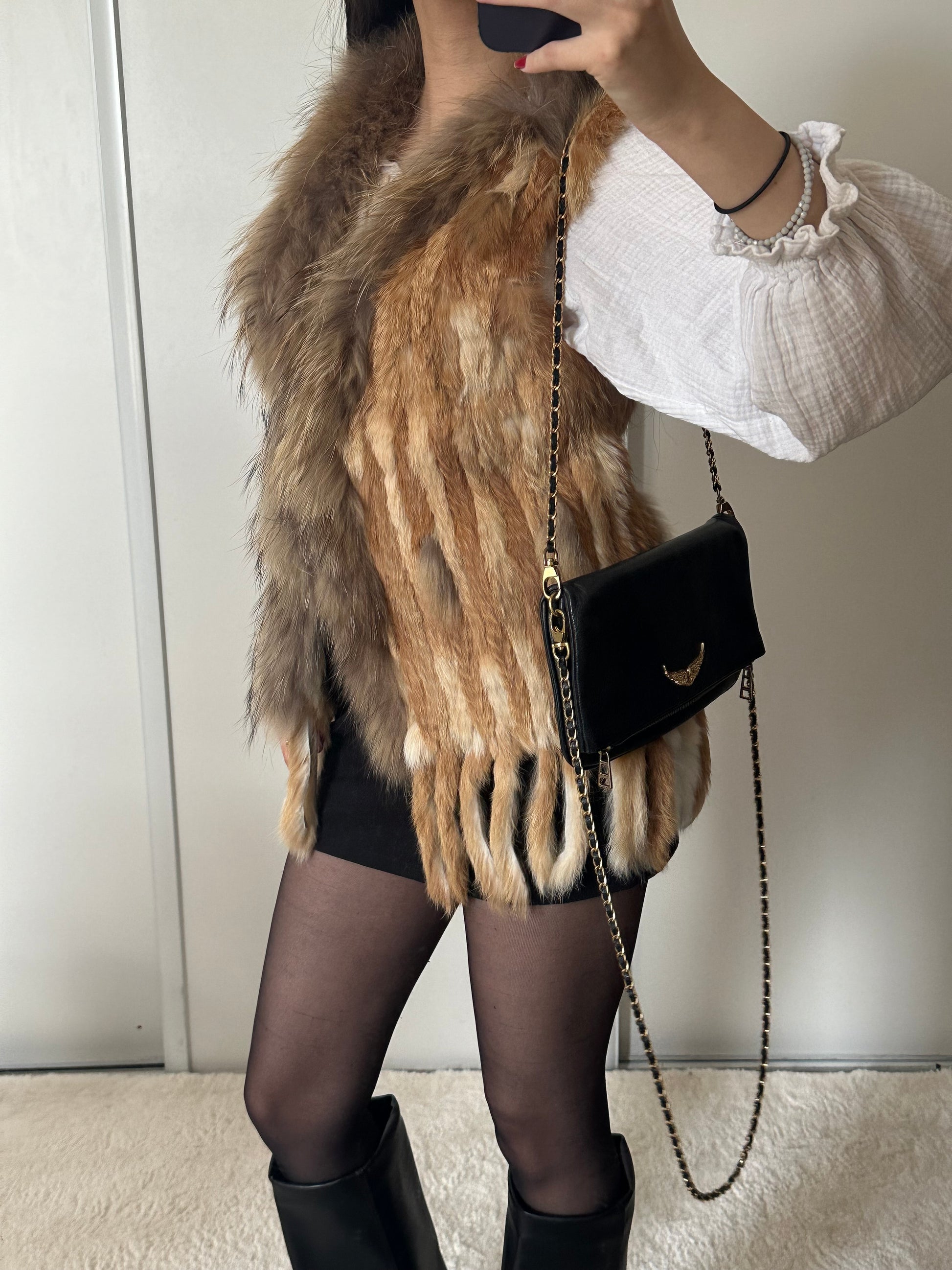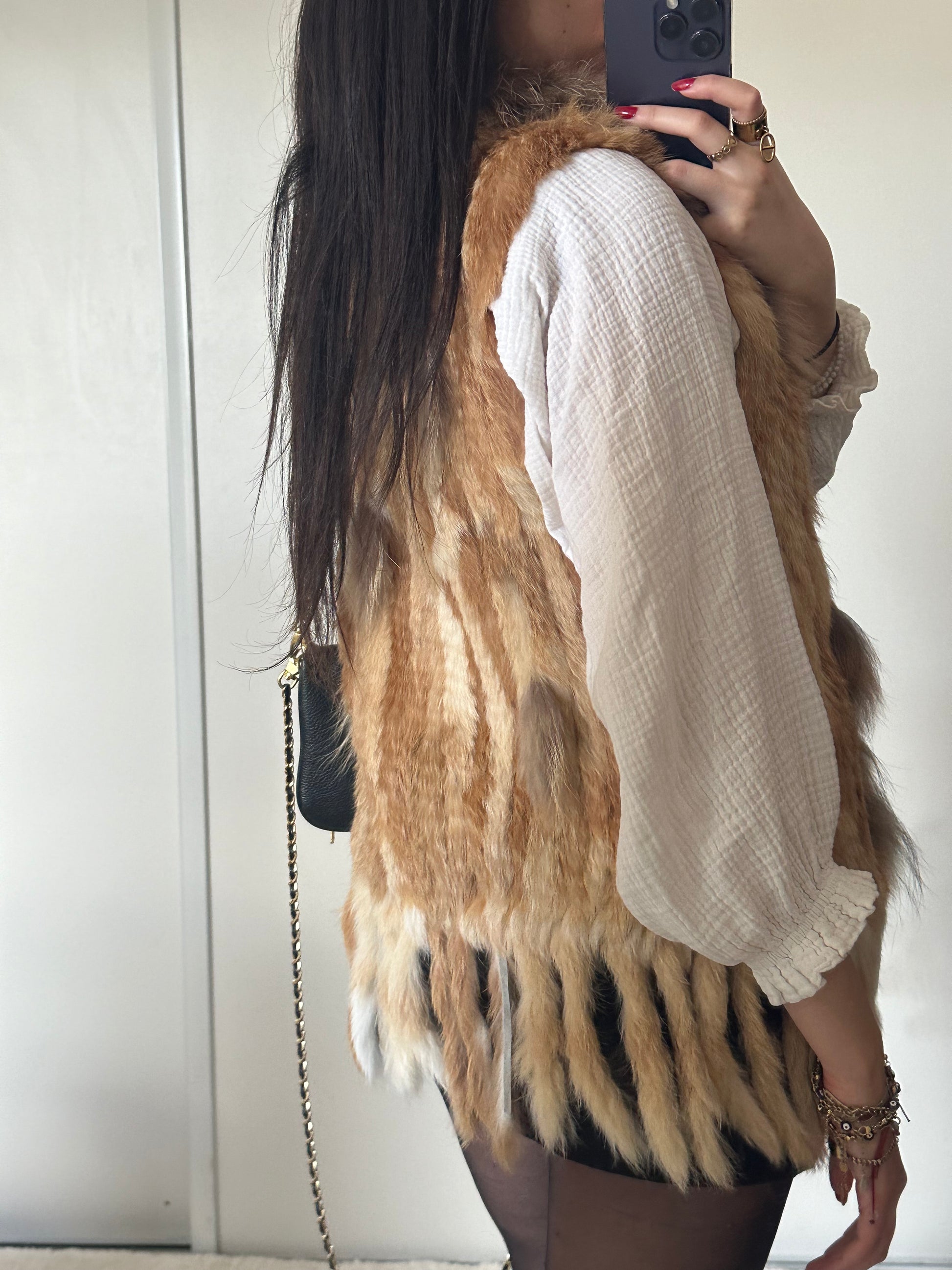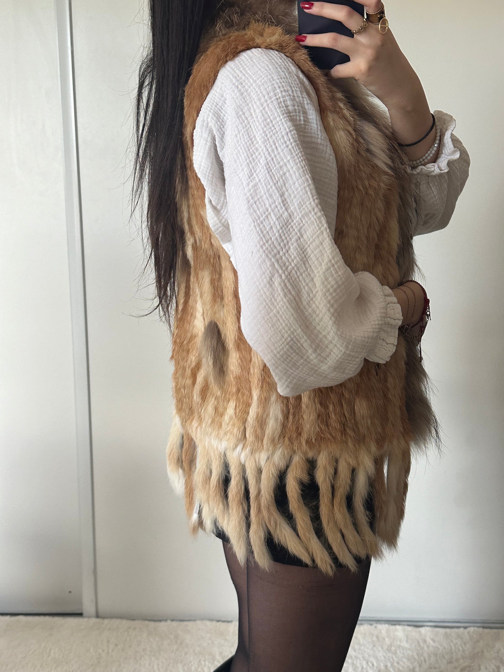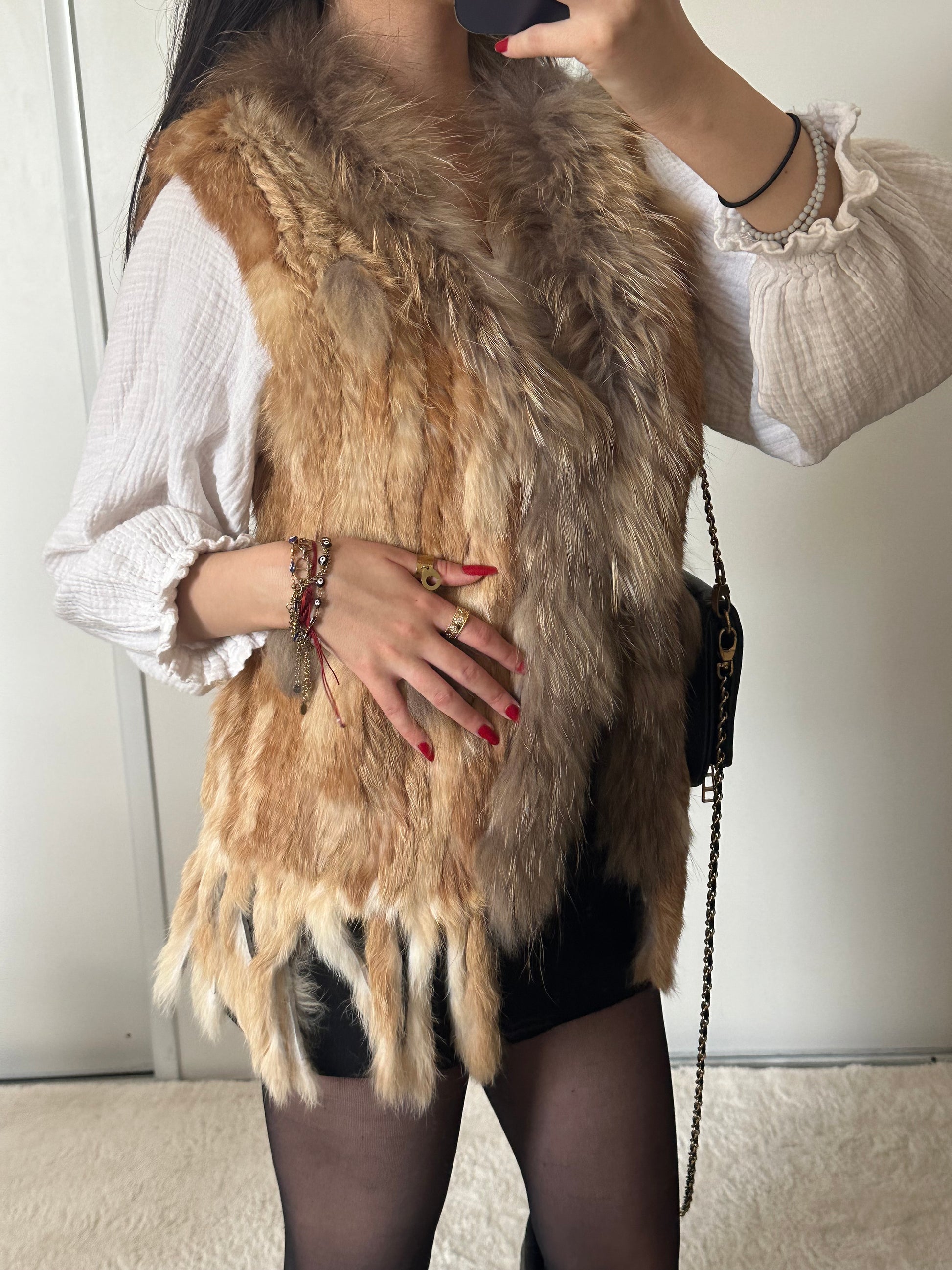 - Fourrure sans manche de Lapin et raton laveur tricoté
