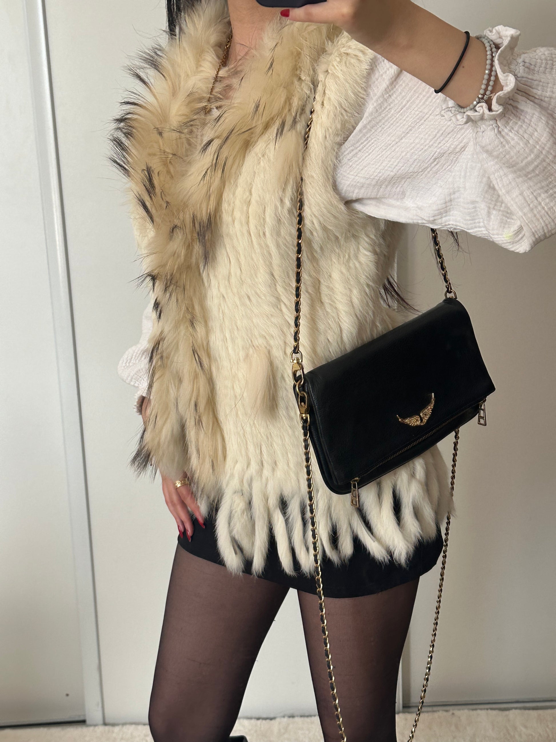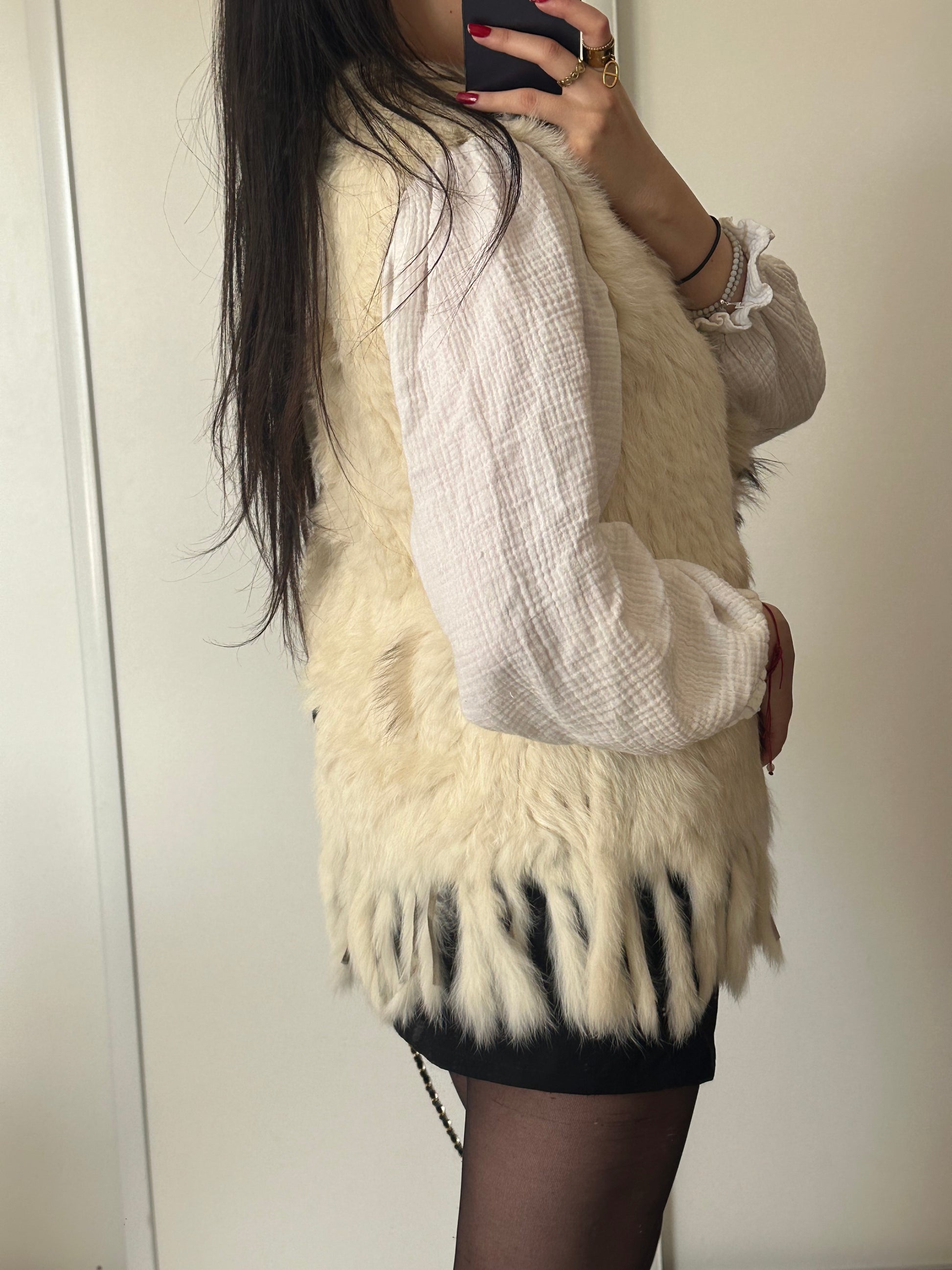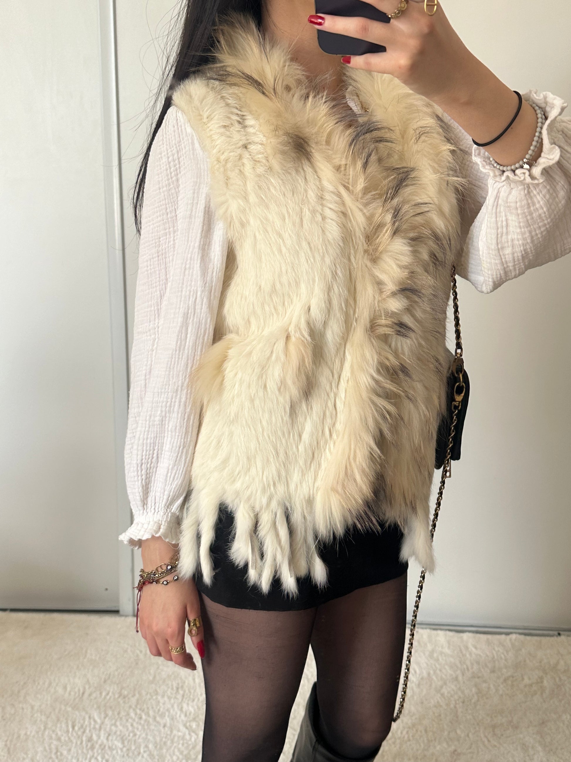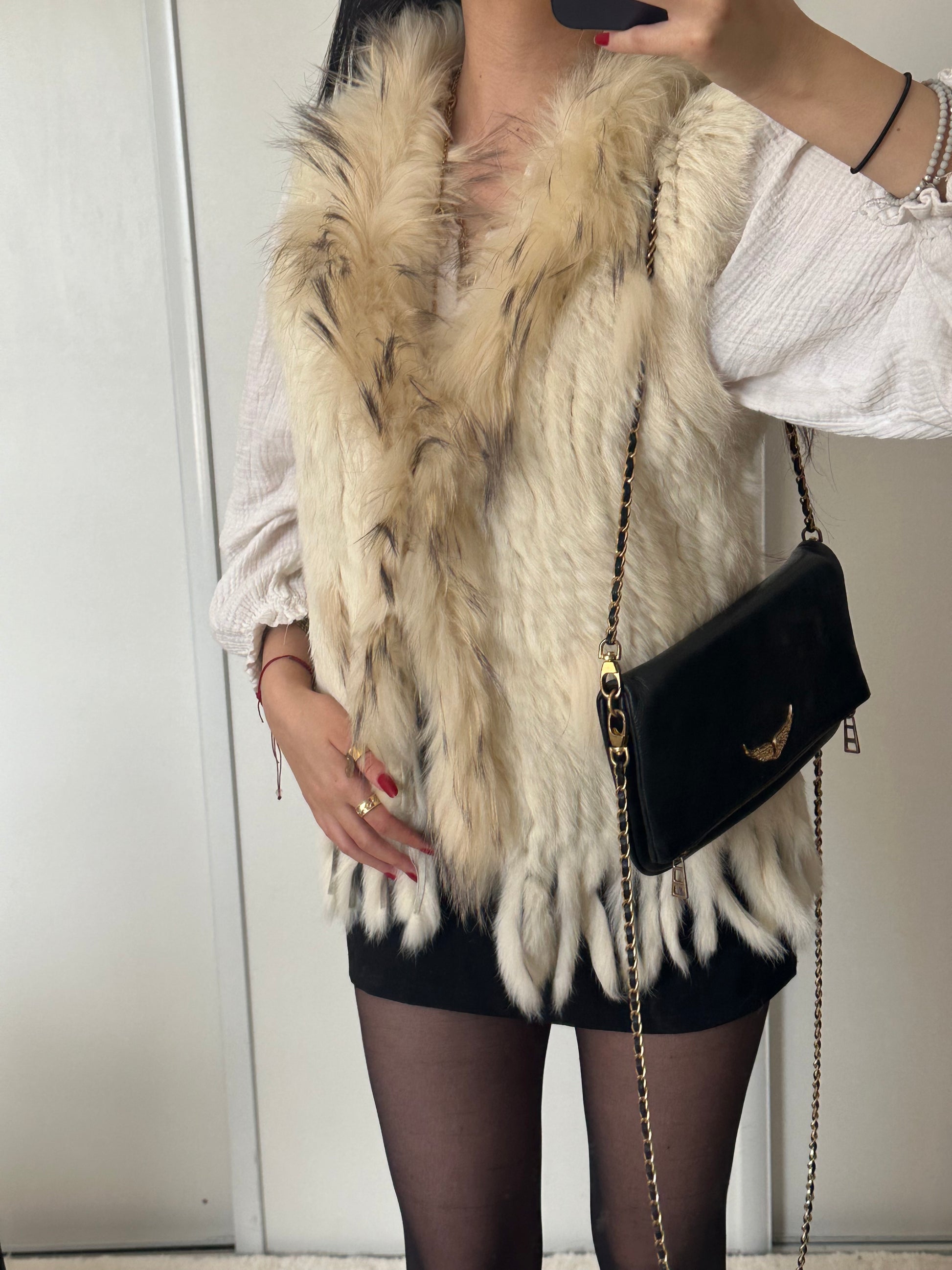 - Fourrure sans manche de Lapin et raton laveur tricoté